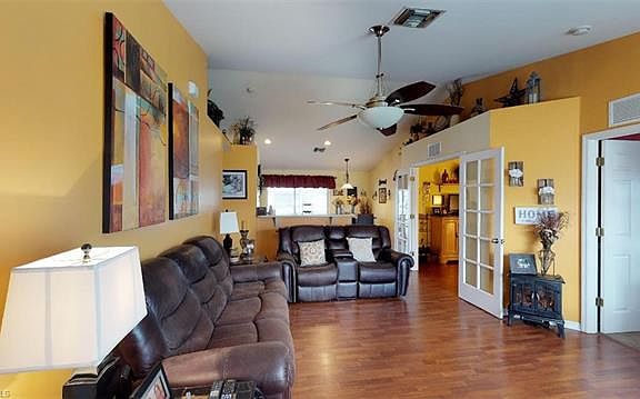 Don't miss this Super Spacious and Fantastically Kept Pool Home with Den. This open floor plan offers an amazing living room with vaulted ceilings with tons of natural lighting. The kitchen/ dining area offers a large pantry with a breakfast bar island. As you pass through the kitchen you will find the best SWFL has to offer with your large lanai and beautiful screen enclosed pool! Just Soak up the SUN! When the sun goes down you can enjoy your large master suite with plenty of closet space. The Den-Office can be used for what works for you and this room provides access to Jack and Jill bathroom that shares access to both guest suites. This has been a very popular floor plan in Cape Coral and there 's a reason, it's just a Fabulous layout. You can check it out via the virtual tour link. This home is located in the growing area between Veterans and the Pine Island Corridor which is close to a ton of shopping options, quite a few gyms to choose from, entertainment, close to top-rated schools and all sorts of places to dine. Don't miss this cute as a button pool home..