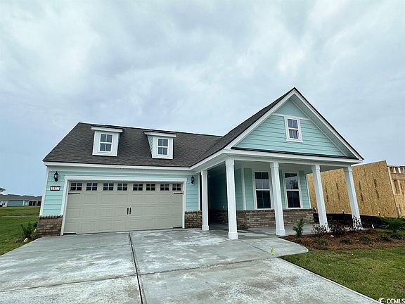 SOME PHOTOS ARE OF COMPLETED MODEL HOME, THIS HOME IS UNDER CONSTRUCTION. Move-in Ready July 2023! New Construction with builder warranties, ask about Current Closing Cost Incentives. THE ONLY 55+ Lifestyle Community. Age Restricted, Central North Myrtle Beach, just a mile from the Ocean. Amazing curb appeal with a gorgeous brick accents and front porch for Adirondack chairs or Rockers. Corner Homesite with 25 Foot Covered Lanai with serene Water view! Dream Kitchen with White Cabinetry, Grey Countertops, Huge Island, Upgraded Kitchen-Aid Stainless Steel Appliances. Double Doors at 3rd Bedroom/Flex/Office. Owners Shower with Frameless Shower door and bench seat. Conditioned Storage Room off Main Foyer. Gas-Line Stub out at Patio, for future outdoor kitchen or fireplace. Craftsman Trim Package with 5-panel interior doors, and 8-inch baseboards. Blind Package and Irrigation System Included! Golf Cart Friendly, Pets/Fences Allowed. Amenities/Clubhouse, Yard Care, High-Speed Internet and Cable included in Monthly HOA. < 500 Homes upon completion, build to suit, choice of 10 Customizable Floorplans. Detached Low-Country, Single-Level Floorplans, 2 - 4 Bedroom homes with 2-3 car garage options. Monthly Events/Activity Calendar provided by full-time Lifestyle Director, and Amenity Center/Clubhouse scheduled to be completed Summer 2023 and will include Indoor Lap Pool, Outdoor Salt Water Pool/Hot tub, 8 Pickleball Courts, Fitness Center, Bocce Courts, Putting Green and 5 Foot Sidewalks both sides of the street throughout the Community! < 5 minutes to City Community Center/Indoor Pickleball & Tennis, Sports Complex, Aquatics & Fitness Center and Crescent Beach Public Beach Access. Dog Park, Marinas, RV Parks/Storage, Golf Courses, Dining, Grocery, Medical Facilities and more within 15 minutes. Myrtle Beach International Airport < 30 minutes away! You cannot beat this Location!