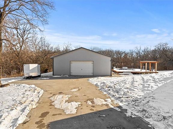 4.74 Acres M/L, Woods, trails, 40x60 awesome shop with electric, 2 overhead doors, metal roof, heated and insulated, pool with deck and pergola, 4 bedrooms, 3 baths, walk out finished basement, private backyard with amazing view, 2nd deck off of kitchen and relaxing patio just outside of walkout, outbuilding is metered separately from house, located on quiet cul-de-sac but still close to all amenities!