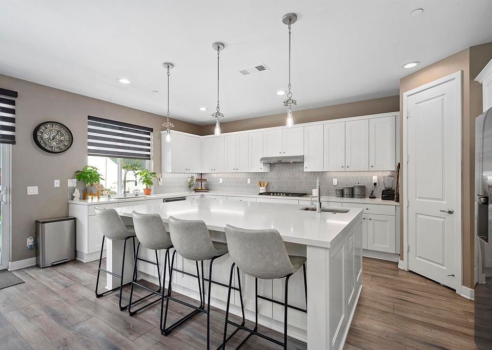 Ready to move in TURN-KEY 4BR+ Loft! Gorgeous modern home with over $75K+ in upgrades. Quartz throughout, smart kitchen, prep sink, adn white cabinets, open concept living room/dining area features wet/coffee bar a great feature for entertaining, with double sliding doors to access the backyard. One BR/full BA with paito downstairs. Upstairs includes, work/play loft, Master bedroom has a large custom walk-in closet, with expanded enclosed shower and separate tub, one of two homes with a balcony. Jr. master with full bath. Front and backyard recently landscaped, plus EV charger. A must see! Conveniently located in a bedroom community, walking distance to schools, sport/dog park, pools and lots of parking directly in front of the home, no heavy traffic. Come by today!
