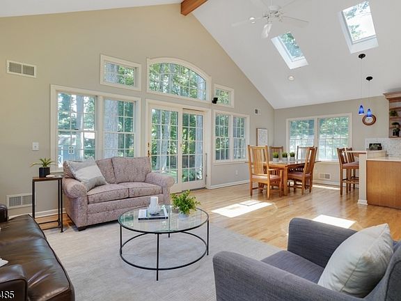 FULLY RENOVATED home set on a quiet cul-de-sac in sought after Parkwood section of Scotch Plains, offering a versatile layout, gleaming hdwd floors, and sunlit rooms w/ Anderson windows throughout. OPEN CONCEPT GOURMET KITCHEN w/ SS applcs, new quartz counters, marble backsplash & eat-in area open to Great Rm w/ vaulted ceiling, skylights & stove fireplace. Sliders to patio and park-like yard. Entertain in style in the formal LR w/ wood burning fireplace & DR w/ french doors. 4 upstairs bdrms & 3 renovated full baths, including lux Master Retreat w/ soaring ceiling, WIC, spa-like bath + an office. Guest bdrm w/ ensuite bath. LL includes large Fam Rm, powder room + bonus space in basement. 2 Car Gar + lg shed. Move right in! Enjoy great schools, close to NYC transportation, shopping, dining, golf & parks.