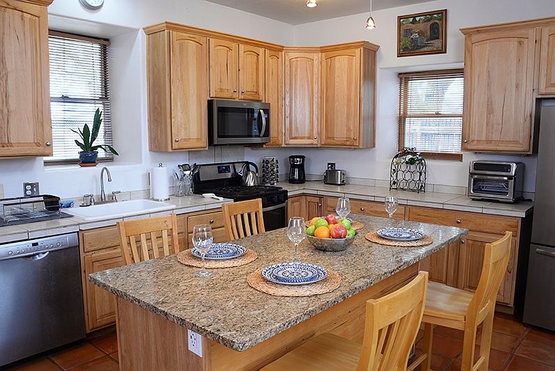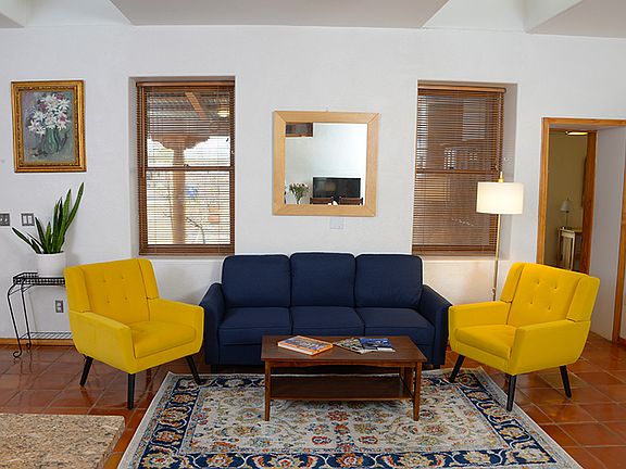 If you like green vistas, proximity to parks, walking trails and a 5 minute bike ride to the Rio Grande river with its many trails and attractions, this fully furnished home with utilities included is for you. There are 3 peach trees on the property. The property owner flood irrigates the front yard every 2 weeks and maintains the property. Small dogs up to 30 lbs are accepted, but no cats. With friendly neighbors, beautiful sunsets, old growth cottonwood trees, and convenient to everything, this home offers both comfort and practicality. This newly renovated 3 bedroom home is full of charm. Master bath features a soaking tub, kitchen has granite island and newer appliances. Thick walls, dormer windows and lots of natural light create a feeling of comfort and peace. The lot sits adjacent to an organic farm and beautiful walking trails are right outside the door. Property is flood irrigated and there is plenty of space for a garden. Fully stocked kitchen with everything you need. Home has fast wifi for streaming, our smart tv includes local channels, cable channels and streaming services (Netflix, Apple TV, Peacock). Use the provided hdmi cable to view your laptop on the large tv screen. This beautiful custom home is near the Rio Grande nature center, library and many restaurants. It is located within 5 miles of several major hospitals, the University of New Mexico, OldTown and the trendy Sawmill district. Large 1/4 acre lot with large porch is perfect for get-togethers. Built in 2005 with thick walls, dormer windows (lots of natural light) and tin roof, you will love the charm and comfort of this home. Newly remodeled with classic furniture, saltillo tile and newer appliances, the home is fully furnished. Owner lives nearby and is available to address any issues. No smoking or vaping allowed. No illegal drug use allowed. No use of marijuana products of any kind allowed. These restrictions apply to guests as well. All utilities are paid by owner. Initial lease term is for 6 months, with possible renewal.