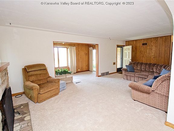 IMMACULATE 1 story Brick/Stone home on a corner lot. Everything you need is on 1 level, over sized 2 car detached garage & carport. Nice workshop and bathroom in garage, large kitchen, separate dining room, large laundry room, 3 bedrooms, 1 & 1/2 bathrooms, covered front porch and back deck. Hardwoods under carpet, loads of storage, fenced back yard, fireplace with gas logs, nice sunporch. Easy to walk to Nitro Parks and pool.
