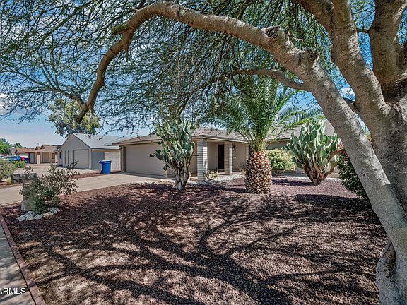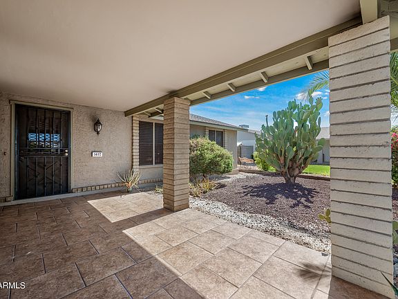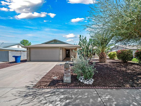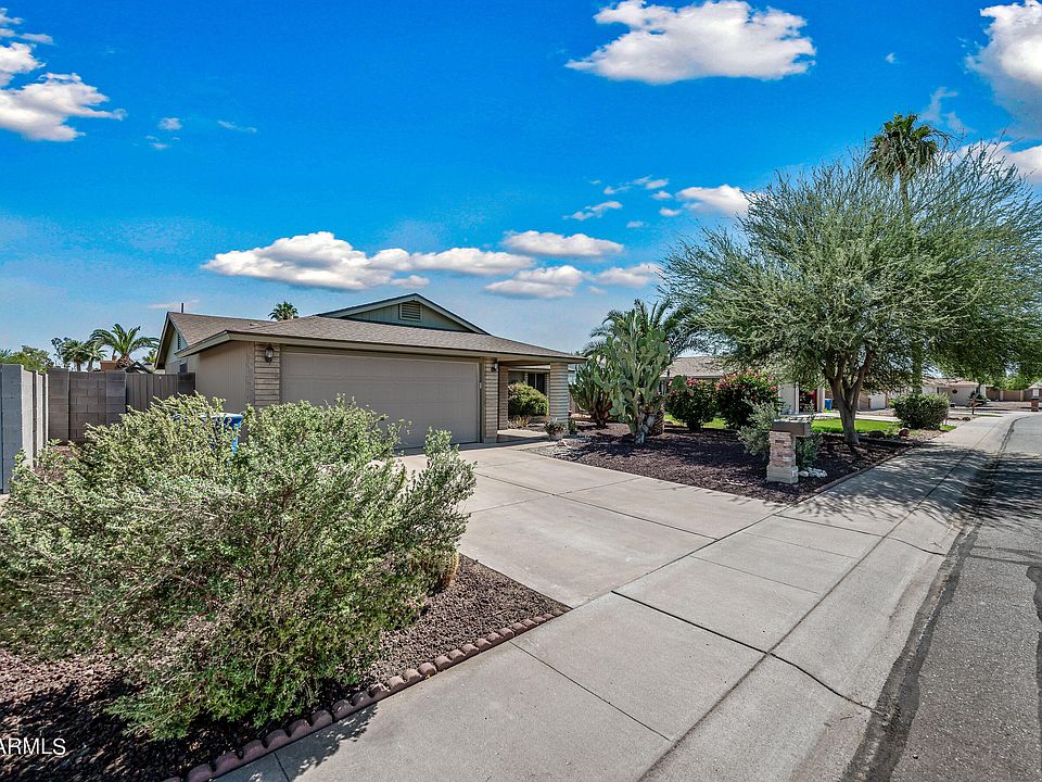 This beautiful 3 bed, 2 bath home features porcelain tile flooring in the main living spaces and plush, new carpeting in the bedrooms. The kitchen has granite countertops with plenty of counter space and cabinetry. Newly painted interiors and exteriors add to the style and freshness of the home. Step outside and discover the large back yard with a covered patio perfect for dining outside and a fire pit for those cool winter evenings. The garage is equipped with built-in cabinetry for extra storage space to help you stay organized. Fridge, Washer and Dryer all stay with the house! Best of all - No HOA!!! Enjoy the freedom to personalize and enjoy your home to the fullest. Restaurants, Grocery Stores, Desert Oasis Aquatic Center and Shawnee Dog Park are all conveniently located near by.