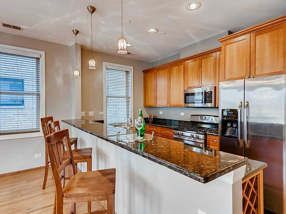 Large & Sun-Drenched 2 bed 2 bath + Exercise Rm/ Storage (or home office) and garage parking in desirable University Village/ Little Italy. Features open floor-plan w high ceilings, huge windows with custom blinds and hardwood floors throughout. Kitchen features granite counters w/ SS appliances and 4 seat breakfast bar. Bath features double vanity, marble floors and surrounding shower/tub. Bonus features: In-unit washer/dryer, wood burning fireplace, rear balcony and security system. Ample closets in the unit + huge heated storage/ exercise room in the basement. 2 Blocks from Taylor Street restaurants and shops, steps to Arrigo Park. Easy access to RUSH Hospital, UIC and downtown Chicago.