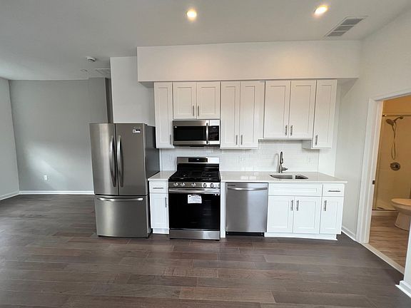 Beautiful newer modern 3rd Floor 1 Bed 1 Bath with open kitchen / living room. Bedroom at back of building. Featuring newer composite hardwood throughout, all recessed lighting in every room, newer light fixtures in halls and entries. Large bath with glass showers and oversized vanity. Beautiful white stone countertops and high end stainless steel appliances, garbage disposal, dishwasher. In unit washer and dryer. Forced air gas heating and central AC. All newer windows throughout. Each unit has a private storage area in the basement accessible from Bilco doors in front of the building. Tenants responsible for Gas, Electric and Cable internet / TV. Water Billed at flat Fee per month - 1 Bed = $40 per month. Sorry No Pets Allowed. 1st month, Last month and one month Security Deposit (so total 3 months) to move in. For gross monthly income, we look for 3X the rent per month. 1 year lease minimum. Applicants must first fill out an application with two recent pay stubs/some form of income verification, copy of photo ID, and non refundable $75 application fee. Tenant is subject to credit check, criminal, income and eviction check. We look for gross monthly income of 3x the rent. If approved, you will be charged a document preparation fee of $100.00. THIS FEE IS NON-REFUNDABLE. Each resident over the age of 18 must submit a separate rental application. Available June 1, 2025! Renters Insurance is required. For showings, please contact Mike Giordano