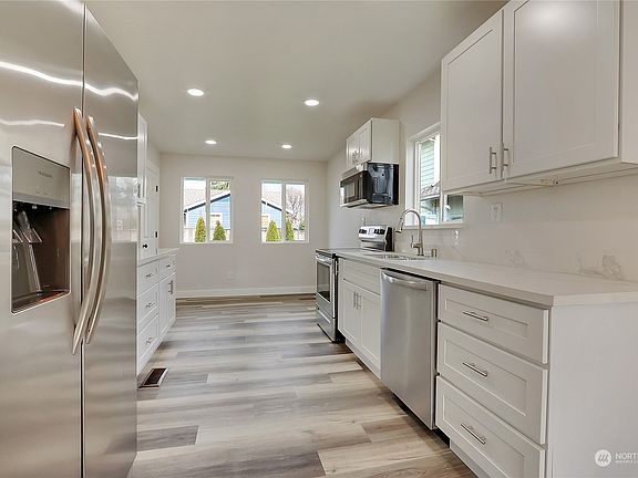 Stunning & Completely Remodeled 3 bed & 2 bath home sitting on fully fenced lot in the heart of Downtown Sumner. Upgrades & Amenities include New Quartz Countertops, New SS Appliances, New Cabinetry & Vanities, New (Scratch Resistance & Waterproof) Hardwood Flooring, New Carpet, New Light Fixtures, Newer Heat Pump & Furnace, Newer Roof, White Trim Package, Updated Plumbing & Fixtures, New Double Payne Windows, Freshly Painted Interior & Exterior, & Much More! Other Features include Primary Bedroom on Main Floor, Dual Vanities, Marble Shower, Tons of Kitchen Cabinetry, Open Floor Plan, Walk-in Closet, Walk-in Pantry, Covered Front Porch & More! Close to Shops, Restaurants, Sumner Schools, Sound Transit, Parks, Trails, & More!