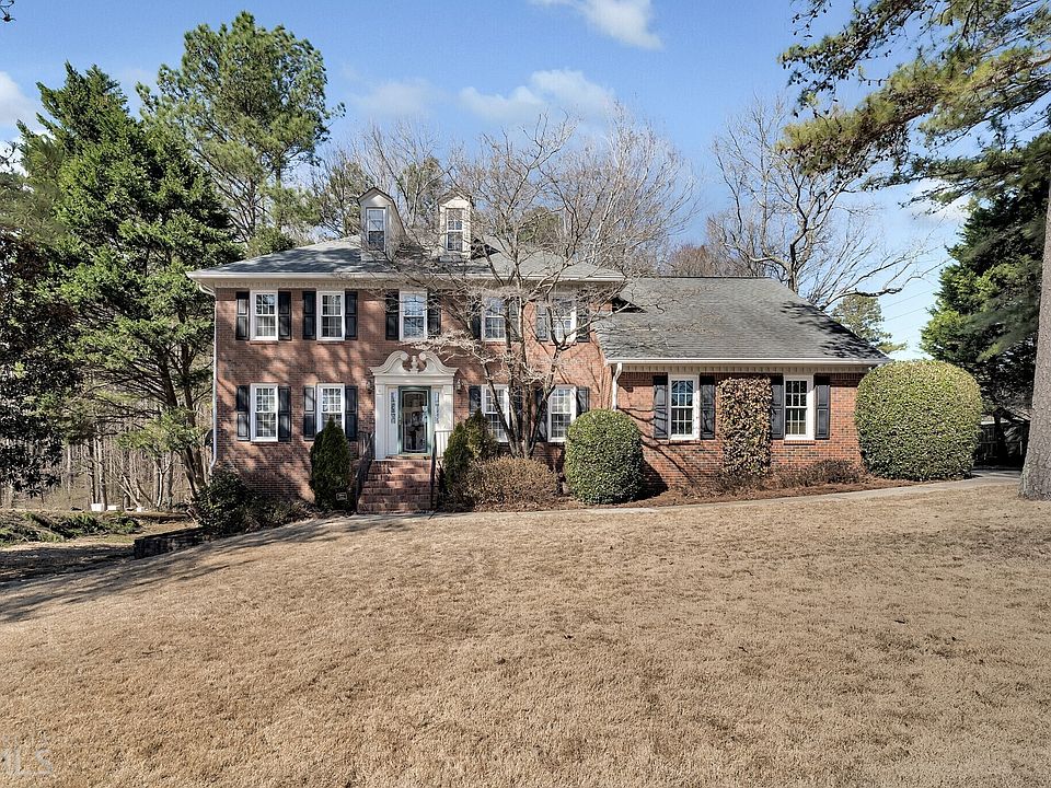 Classic Brick Beauty in Sought after "Jefferson Station"! Peachtree Ridge Dist! Great Location! Private Wooded Corner Lot! Spacious Home - Entry Foyer, Formal Living Room or Office, Guest Bedroom & Full Tile Bath on Main Level! Cozy Family Room w/ Brick Fireplace, Kitchen w/White Cabinets, Granite CTops, Upgraded SS Appliances, Stone Back Splash, Pantry, Laundry Room w/ Built In Cabinets. Sunny Eat in Kitchen, Formal Dining Room. Upstairs with 2 additional bedroms & tiled guest bath, Master Suite w/ Huge Walk in Closet, Deluxe Tiled Bath w/ Garden Tub & Sep Shower. Large Attic Storage over Garage! Terrace Level partially finished and Loads of Storage! Large Oversized Deck for Grilling Out, entertaining and relaxing , 2 Car Side Entry Garage. Mature Landscaping, Newer Roof & All New Insulated Windows ! 1 owner home , loved for many years! Located minutes from restaurants, entertainment, I-85!