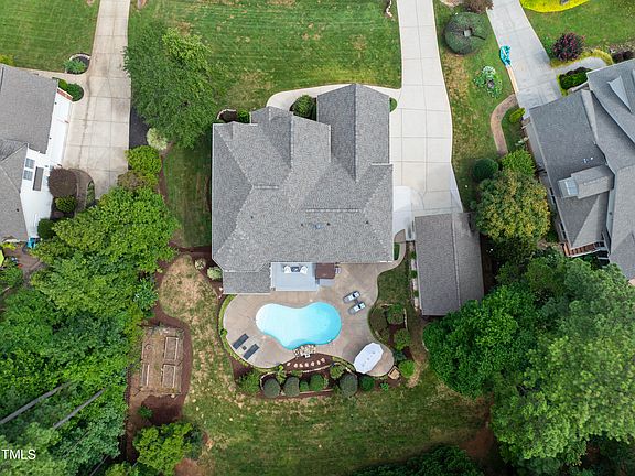Welcome to your dream home—an exceptional 4-bedroom, 3.5-bathroom estate nestled on a beautifully landscaped .71-acre lot with complete backyard privacy. Spanning 3,774 square feet, this residence offers an ideal blend of refined interior upgrades and resort-style outdoor amenities--including this home is just a half-mile stroll to BW Wells Park, a 12,000-acre park surrounded by Falls Lake. Step inside to discover beautiful refinished hardwoods throughout the first floor, expertly refinished in 2020. The heart of the home is the stunning 2023-renovated kitchen, boasting quartz countertops, all-new stainless-steel appliances, an oversized undermount sink, and custom wood detailing that adds character and charm to this space. With two spacious islands—one with seating for two and the other accommodating up to six—this kitchen is truly built for entertaining. Gather around the 20-ft stacked stone fireplace in the spacious family room, or enjoy meals in the elegant formal dining room. A dedicated home office and a versatile flex room on the main level offer perfect spaces for remote work, homeschooling, or a hobby room. The home also features dual staircases—one in the foyer and another conveniently located near the garage entry. Upstairs, a catwalk-style layout provides a sense of openness while separating the private primary suite from the three generously sized secondary bedrooms. There are also two full bathrooms (one with a double sink), and a bonus room. The serene primary suite features a spacious sitting area, oversized bathroom with double sinks, a jacuzzi tub, separate shower, and a private water closet. But the real showstopper is outside: • Heated saltwater pool • Built-in chiminea for cozy evenings under the stars • Hot tub, perfect for unwinding • Enclosed garden space for your own salsa garden or herb garden • Large grassy yard + wooded area for pets, play, or peaceful relaxation • Double-gate access for boat, RV, or trailer storage • 20x32 detached garage with tall bay, ideal for boat storage • 3-car attached garage for all your daily parking needs This home is truly a rare gem offering privacy, space, and unparalleled access to nature—all just minutes from everyday conveniences