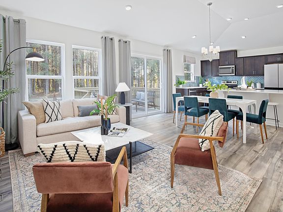 Welcome to this absolutely stunning model ranch home, sitting on a large homesite in a lovely southern Wake neighborhood, complete with fiber cement siding and Energy Star certification! This formal model is loaded with everything from volume ceilings in the main living area and 9-foot ceilings throughout the rest of the home. The energy-efficient kitchen comes with upgraded cabinets and stainless steel appliances, offering a great space for cooking and spending time with family and friends. Featuring upgraded Luxury Vinyl Plank floors throughout the living areas, this home provides durability and style, while the bedrooms are finished with cozy carpeting for added comfort. The main bedroom is a comfortable retreat, with a spacious private bathroom, tile walk-in shower and a large walk-in closet.