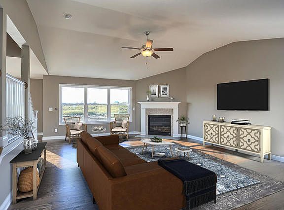 Top notch new construction in growing Fieldstone Subdivision. The Remington plan is popular thanks to the abundance of space it provides; spacious family room with fireplace, flex room could be formal dining room, formal living room or office/den, large eat-in kitchen with island and closet pantry ... all with hardwood floors. Split staircase leads to upper level with four bedrooms including the master suite with vaulted ceiling, walk-in closet and private bath with dual vanities. Laundry room conveniently located upstairs as well. Full basement is partially finished with a spacious rec room, full bath and 5th bedroom plus room for storage.
