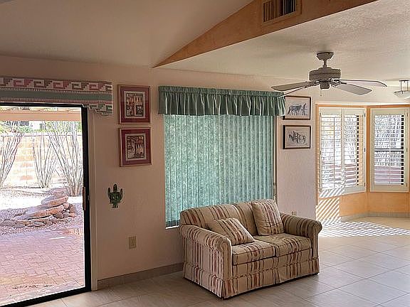 Welcome Home! This Expanded Silvercreek Model-1674 sq ft. has an open concept feel with aSouthwest flair. The home has a ton of natural light. New ceramic tile 2019. You will enjoy the Keva gas fireplace in the living area on those cool AZ nights. The kitchen features granite and stainless appliances. The East facing backyard has an Aluma wood ramada runs the full length of the home keeping it cooler in the summer, The yard is fenced and has mature fruit trees.Roof underlayment 2019. Call today to view and start enjoying the Sun City Oro Valley Lifestyle