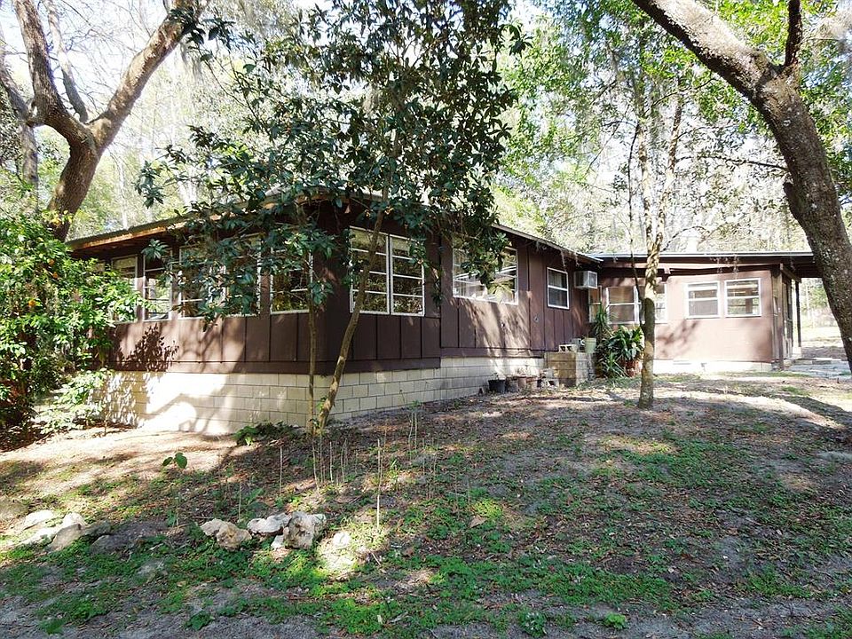 Handyman special that backs to the Ocala National Forest and is within walking distance to the Ocklawaha River. There are 3 bedrooms, 1 bath, huge living room/dining area, closed in porch, sun porch and Florida room. There is a large storage building plus smaller building. The house has 6' T&G pine board ceilings and original pine floors. There is termite damage in some areas of the flooring. The house has been treated for termites, but damaged wood has not been replaced. Price reflects that the home needs work.