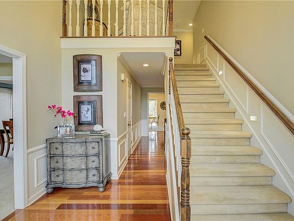 Impeccable home on private lot in Avian Glen neighborhood. Large, two-story foyer and beautiful hardwood floors welcome you into this beautiful house. Spacious kitchen, family room and sun room flow together seamlessly for everyday living & entertaining! Gorgeous, recently renovated kitchen with suede granite, cabinetry w/ under cabinet lighting, beverage station & Jenn-Air appliances. Main floor full bath and laundry room. Master suite w/ vaulted ceiling, generously sized bathroom & large walk-in closet w/ built-in shelving. Basement rec room and huge storage utility room. Enjoy evenings sitting on the large patio around the gas fire pit overlooking the private, professionally landscaped backyard. Move right in!
