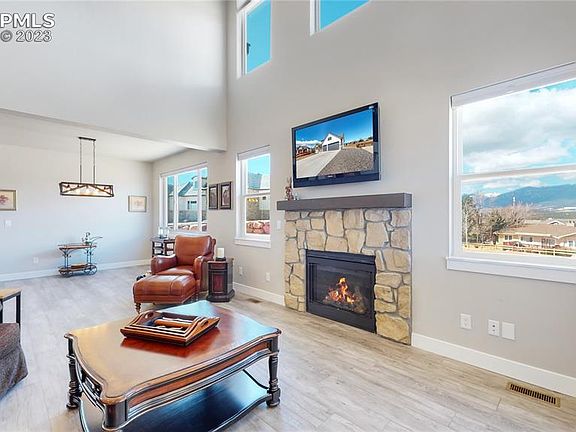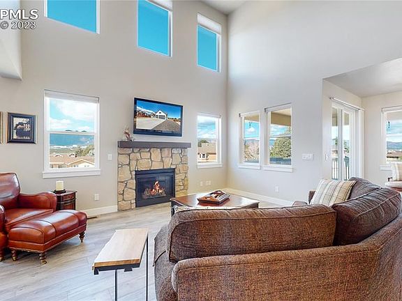 Welcome to your dream home in the highly desirable neighborhood of Gleneagle! This stunning property boasts an open floor plan with amazing natural light and breathtaking mountain views. With 5 bedrooms, 5 bathrooms, and a 5 car garage, there is plenty of space for you and your loved ones to relax and unwind. As you enter the home, you will be greeted by the open floor plan and expansive two story ceilings. The gourmet kitchen is sure to please with luxury cabinetry, appliances and spacious pantry. The master suite is a true oasis, featuring a luxurious en-suite bathroom and a private balcony with stunning views. Upstairs you will find a spacious loft open to below, a generously sized secondary bedroom and bathroom. The walkout basement is a fantastic addition to the home, providing even more space for entertainment and relaxation. There's even a secondary kitchenette in the basement, perfect for hosting large gatherings or as an in-law suite. This home is truly an entertainer's paradise, with multiple living areas and outdoor spaces for hosting events and enjoying the beautiful Colorado scenery. Whether you're sipping coffee on the spacious deck or watching the sunset over the mountains from the backyard, this home has it all. Located in the highly sought-after Gleneagle neighborhood, you'll enjoy easy access to I-25, newer amenities and shopping off of North Gate, US Air Force views and more, while still feeling secluded in your own private oasis. Don't miss your chance to own this luxurious property – schedule your tour today!