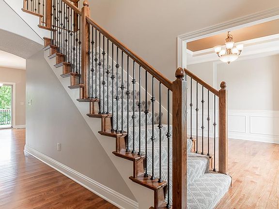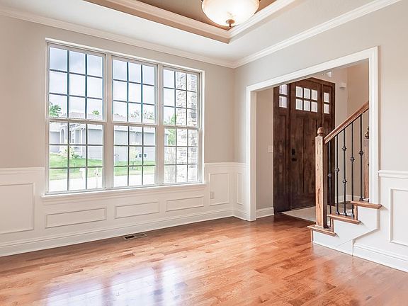 This gorgeous Lakeshore Meadows home, just past Lake Olathe, is ready for you to move right in; new carpet throughout! Built in 2012 by Pinnacle Construction, this home's level of quality is truly remarkable! The main floor features gleaming hardwood flooring, beautiful trim work, freshly painted walls, & gorgeous views beyond your private, tree-lined backyard. There are 4 bedrooms upstairs including a spacious master w/ luxurious ensuite. Finished lower level walk-out includes a wet bar, full bath & 5th bedroom!