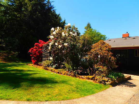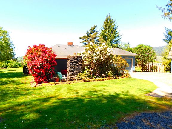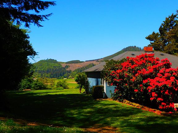 SERENE VALLEY VIEWS from this charming Cloverdale home. Featuring pine, cedar interior and original hardwood floors. Private with a secluded feel, the ranch style home has a full basement and is situated on 2 acres which border private timber land. Easy landscaping, mature trees, rhododendrons, gold fish pond, fire pit, entertainment patio with outdoor stone fireplace, quad and hiking trails.