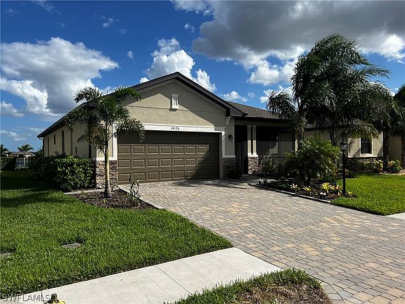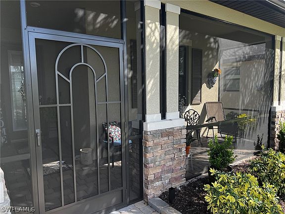 WHY WAIT TO BUILD… THIS HOME IS ALMOST BRAND NEW! Be one of the first to come and see this beautiful totally upgraded home, located in the gated community of Portico, in Fort Myers, Florida. This Home Site has a BEAUTIFUL LAKE VIEW! Sit and relax on your screened-in Lanai or walk out to the round-shaped patio and light up the fire pit to watch those SWF sunsets! The distinctive nature of this property sits on a wide-open view of the lake. This 3-bedroom 3 bath home features a large open kitchen, a Great Room with a fireplace, a dining room, granite counters, white wood cabinets with 42"uppers + crown molding, stainless steel appliances, and tiled backsplash. Some of the upgrades are a glass front door, Ceiling fans, a fenced-in yard, Round Patio with a fire pit, a screen in the front and back porch, garage storage racks, and an insulated garage door. Portico is a gated community that features a Clubhouse, Fitness Center, Aerobics Studio, Pool with Lap Lanes, Playground, BBQ Area, Basketball Courts, Tennis Courts, and Pickleball. Portico is a twenty-minute drive from the diverse and rich culture of the historic downtown Fort Myers River district off the Caloosahatchee River where you can experience great dining and shopping opportunities. This home is beautiful inside & out and has room for a pool.