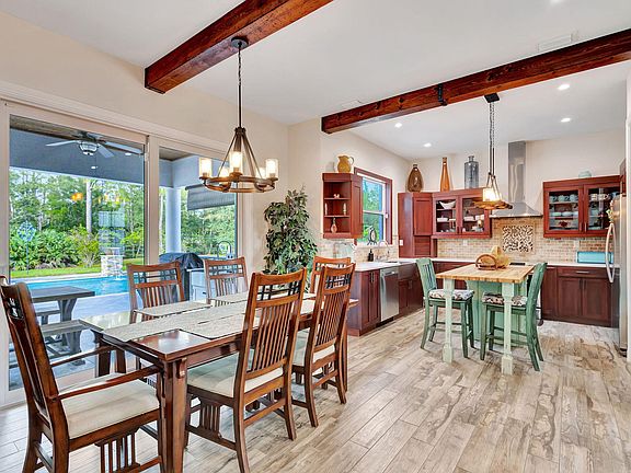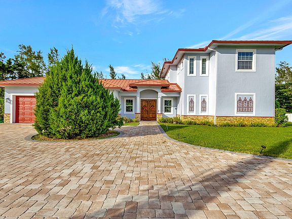Welcome to a truly enchanting custom-built home, nestled on 1.29 acres of paradise in The Acrerage. Built in 2017, this residence offers charm and elegance throughout with custom wood doors, rich wood floors, and thoughtful design. On the main floor, enjoy two spacious bedrooms, two full baths, plus an office perfect for working from home. Step outside to your 2020-built oasis with a pool, cascading waterfalls, and a covered lanai ideal for entertaining. The second floor boasts a versatile loft for a playroom, TV area, or additional workspace, along with two more bedrooms and a full bath. Relaxation and style await!