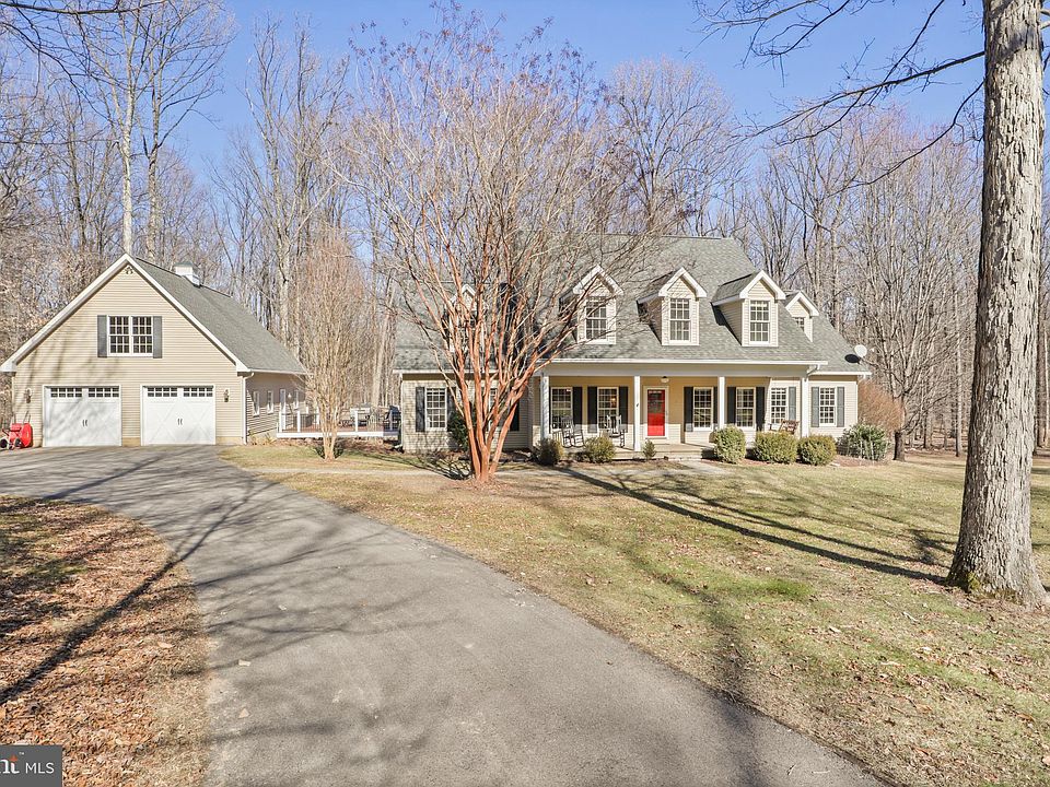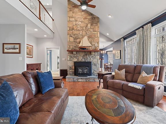 This is the one you have been waiting for! Beautiful and charming craftsman custom built home on almost 5 acres in Leesburg. Picturesque front porch is perfect for enjoying the quiet and peaceful experience that this property provides. Walk into the front door and be greeted with hardwood flooring leading you into the office/library with plenty of open shelving, large windows and natural light. Adjacent is the formal dining room which also has access from the family room/kitchen. The 2 story family room features a stone surround wood stove, recessed lights, large windows and access to the expansive back deck. Large, spacious eat-in kitchen with stainless steel appliances, electric cooktop, granite countertops, pantry, butcher block island and plenty of storage and cabinet space. Generous sized laundry room off of the kitchen with adjacent half bathroom. Main level primary bedroom features new carpet and paint, 2 walk in closets and an attached primary bathroom. Upper level features a full bathroom, 3 spacious bedrooms and a large flex room that could be used as a bedroom and plenty of space to add a closet. All bedrooms have large closets and brand new carpet throughout. Lower level walk OUT basement is ideal for entertaining and family time. Stone surround wood burning fireplace, open entertaining area featuring a dry bar, rough in for a full sized bathroom and an incredible amount of unfinished storage space. Wood detailed trey ceilings, brand new carpet on stairs and living area and freshly painted. Fantastic trex deck runs almost the entire width of the back of the home and allows for multiple entertaining spaces, dining, lounging and more! Deck wraps to the side of the home and leads you to the spacious 3 car detached garage. Inside you will find a second level for storage or this area could be finished for additional living space. Wrap around driveway allows for plenty of outside parking and easy access in and out. This location offers the perfect mix of private living and access to the conveniences of Leesburg. Just 8 miles from shopping, dining and entertaining in downtown Leesburg and within several miles you will find multiple wineries, breweries and restaurants. Convenient to Route 15, Route 7, Greenway Toll Road. This home is truly one of a kind!