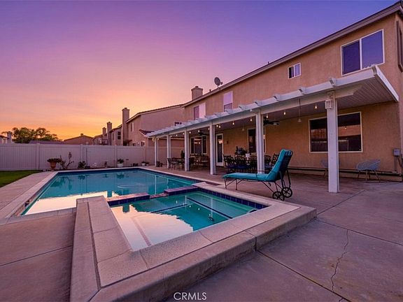 Welcome to the home you’ve been waiting for! This stunning 2,600 sq. ft. cul-de-sac pool home offers 4 bedrooms, 3 full bathrooms, and RV parking. Step inside to a bright formal living and dining area that leads to a beautifully remodeled island kitchen featuring quartz countertops and an open layout to the family room with a cozy fireplace and built-ins. The main level also includes a bedroom and full bathroom, perfect for guests. Upstairs, you’ll find two spacious bedrooms, a full bath with dual sinks, a convenient laundry room, a versatile loft, and a luxurious primary suite complete with dual walk-in closets. The backyard is an entertainer’s dream with a sparkling pool and spa, a full aluminum patio cover, a grassy play area, and RV parking with gated access. FULLY PAID OFF solar system. Pool heater replaced in 2025. Pool pump replaced in 2021. AC units replaced inn 2015. Ideally located just around the corner from McCune Family Park and Clara Barton Elementary School.