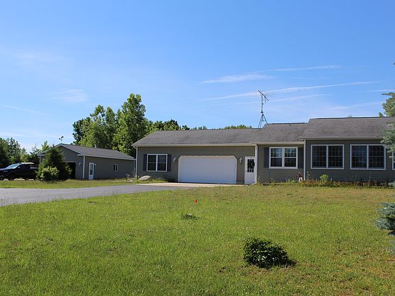 Fantastic Ranch home nestled on 7 acres with loads of privacy and your own pond stocked up on fish! This ranch offers a wonderful split floor plan with the master on one end and the additional two bedrooms on the other end. This property features one attached garage and an additional detached garage with a wood stove in it and let's not forget the outdoor wood stove to heat the home. The back yard has a nice large deck to enjoy while you drink your morning cup of coffee and watch the wildlife or on those rainy days enjoy the enclosed porch off the front of the home. Endless possibilities here that you don't want to miss out on.