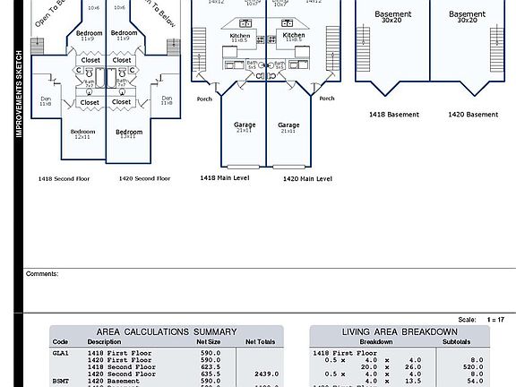 Fantastic side-by-side duplex. Each side features 2 beds, 1 1/2 baths, plus a den/office. Main floor with vaulted living rooms; Kitchens with all appliances and eating bar. Laundry area and 1/2 bath on the main floor; Attached 1-car garage; Interior access to unfinished basements(not included in square footage); Fully occupied.