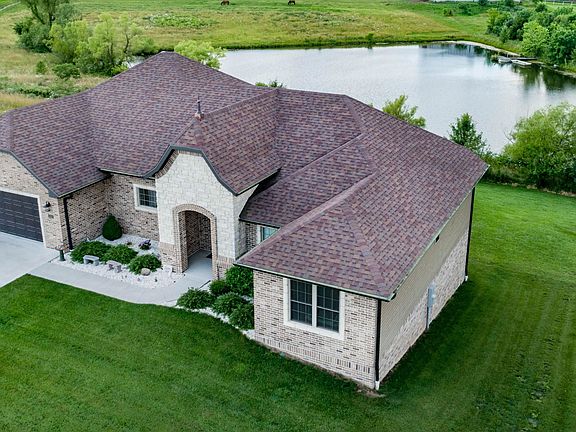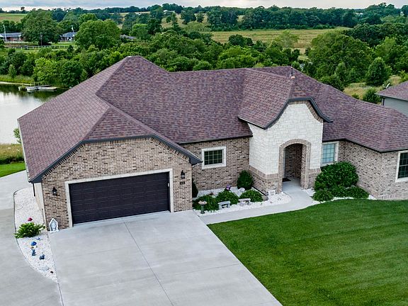Custom Home in Blair Oaks with SO MANY UPGRADES! Just to name a few: Geothermal system, 2 water heaters, dual thermostats, sprinkler system 4 sides, concrete driveway to 3rd garage, central vac, safe room, epoxy flooring in main garage, custom blinds throughout, specialty ceilings throughout main, handicap accessible doors (36'') and wait until you view this meticulously cared for home! Open the front door and be drawn to the oversized windows & gorgeous view of large pond & countryside. Kitchen is a chef's delight with granite island, stainless appliances, abundance of cabinetry, huge walk in pantry, adjoins dining area & family room. Walk out to covered deck where you can relax & enjoy the privacy & views! Master suite is incredible with 2 separate granite vanities, tile shower, huge