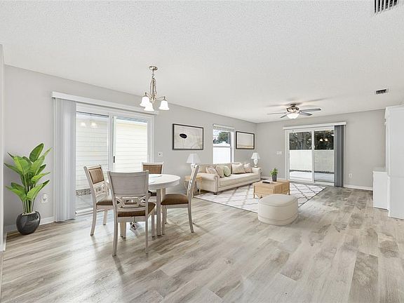 Come and see for yourself, this cozy freshly painted charmingly updated 2-bedroom courtyard villa, boasting new stainless appliances, luxury vinyl flooring, three new glass sliders, and a new storm door with retractable screen. You will love the granite countertops and ceiling fans in every room. Let's not forget the very spacious remodeled bathroom. Privacy is a must with this gorgeous courtyard villa, centered within a very active community. This lovely home is close to the Savannah Center and Sports pool for your daily use. Just a short golf cart ride to Glenview Country Club where you can enjoy one of the most beautiful championship golf courses at the villages, not to mention an extensive menu and libations where you can sip an snack with friends. To convey with property a new dining room set, entertainment center and mirrored dresser. Roof 2020, HWH 2017
