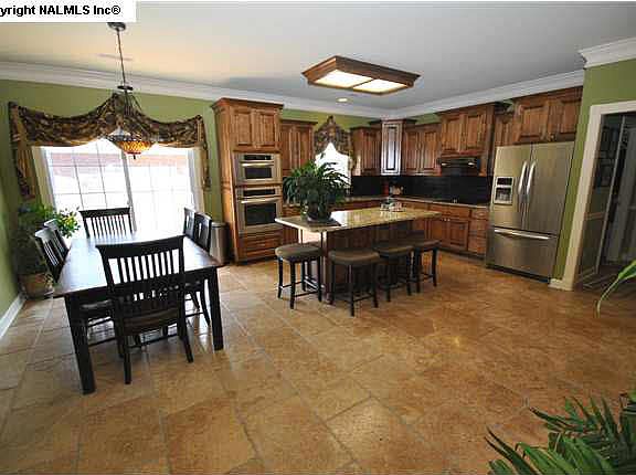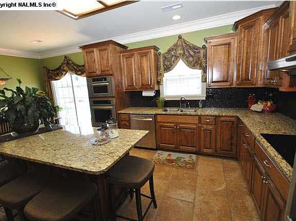 This showcase of architecture located on a generous corner lot has 4 bd/4ba. Arched passageways, kitchen features granite, custom cabinets, oversized tiled stone floor, & glass backslash Master suite has a double trey ceiling, a built in dresser in the closet and tiled shower. Great room has built-in book cases, surround sound and opens to a beautifully designed pool with grill and drop down fire pit area. Rec room can be 5th bedroom. Convenient to I65/Hartselle City Schools!