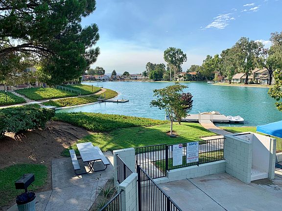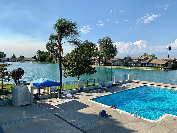 Welcome to Village Grove! Large and Beautiful Two-Story Townhome Located in the Desirable Village Grove Community, Offering Resort Style Amenities Right Out Your Front Door. Beautiful and updated, you will love this newly painted two-story 3-bedroom, 1.5 bath townhome located in the desirable lakeside community of Village Grove. This townhome offers a spacious downstairs featuring a living room and formal dining room area at entry, a powder room, a large kitchen that opens to a private patio, tile countertops, tile flooring, new sink and microwave, dishwasher and a conveniently located separate laundry room with upper cabinets and enough space for a washer and dryer. Upstairs features 3 bedrooms, a full bathroom at hallway, and a master bedroom with its own sink and walk-in closet. There is also a large, attached garage with space for two cars and extra storage. The garage leads to the private patio. Additional features include new paint inside, brand new carpet throughout, all new blinds, tiled floors, and good amount of storage, including a deep storage closet by the dining area. A quick walk across the street will get you to the water's edge of the glassy lake for sunset strolls. Down the street, use the amazing amenities that Village Grove offers for all types of families, including access to a private 7 Acre lake with boating and fishing, walking trails, a small park, large grassy areas, BBQ's, picnic tables, playground, basketball, tennis courts, 2 pools, spa, recreation room, and a large canopy area that you can reserve for large parties and events. This townhome comes with access to the Master Association Recreation Center with Olympic sized pool, paddle boats, sport courts, and much more! Close to new Foothill Parkway Corridor, taking you to Orange County, close to Green River, 91 and 15 freeways, shopping and good schools. 1 Year Lease. Owner Pays Home Owner's Association Fees, Tenant Pays for All Utilities. Small dog allowed only if pre-approved by Landlord and with the payment of an additional deposit of $500.