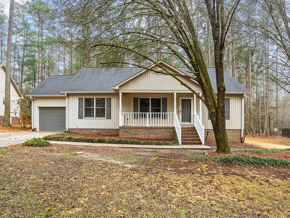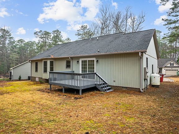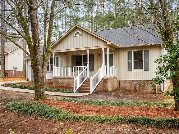 1-story bright and updated 4-bedroom, 2-bath, 1-car garage home with new washer / dryer included in desirable Carolina Trace community. New and modern decor featuring fully remodeled kitchen with granite countertops and stainless-steel appliances. Bathrooms fully remodeled with white cultured marble vanities, ceramic tile, and new showers and tub. Beautiful and easy to maintain engineered vinyl plank floors throughout. Every inch of this home was meticulously renovated with modern fixtures, modern paint colors and every home convenience available including Nest thermostat and Ring doorbell. Enjoy leisure activities relaxing on the front porch, large deck or utilize the many amenities included such as access to community pool, tennis court, fully stocked bass pond, 315-acre lake, golf course, and country club. Home is available for occupancy starting February 10th. Lease terms from 14-17 months available. Pets allowed on a pet-by-pet basis with associated fees. Home is available for occupancy starting February 10th. Lease terms from 14-17 months available. Pets allowed on a pet-by-pet basis with associated fees. $350 one -time fee for each approved pet (not a deposit and not refundable).