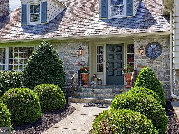 Nestled in the heart of the esteemed School Lane Hills neighborhood, this stunning 4-bedroom, 2.5-bathroom Stone Cape Cod seamlessly blends timeless elegance with modern luxury. Upon entering, you are welcomed by a beautiful flagstone-floored foyer, setting the tone for the warmth and sophistication that defines this home. The spacious living room boasts a gas fireplace, rich hardwood floors, and crown molding, while the formal dining room offers a picturesque view of the backyard—perfect for entertaining. The luxurious eat-in kitchen is a chef’s dream, featuring high-end granite countertops, a center island, and top-of-the-line stainless steel appliances, including a Wolf 5-burner stovetop, wall oven/microwave, warming drawer, and built-in dishwasher. Adjacent to the kitchen, the cozy family room with a gas fireplace and French doors opens up to a lovely stone patio. Upstairs, the serene primary suite offers walk-in closets and an elegant ensuite bathroom, complete with a tile walk-in shower, tile wainscoting, and dual sinks. A spacious second bedroom features two walk-in closets, while the second full bath includes a tub-shower combination. The third-floor bonus room, with vaulted ceilings, hardwood floors, and a cedar-lined closet, provides a perfect retreat or additional storage. The lower levels offer exceptional flexibility, with a recreation room ideal for a gym or playroom, featuring luxury plank flooring, and a media room with a dry bar, plush carpeting, and ample storage. Completing this exceptional home is an oversized, temperature-controlled two-car garage, a beautifully landscaped backyard with a stone patio, a tranquil koi pond, and vibrant perennials, hydrangeas, hostas, and vines. A true gem in a coveted location—schedule your private showing today!