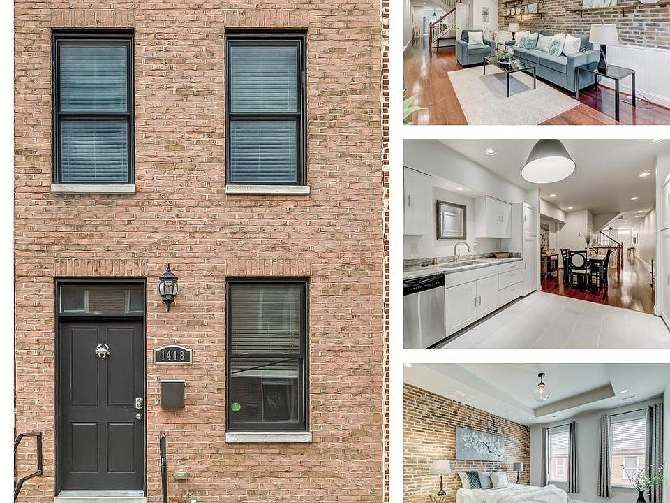 Virtual tours available upon request! Pristine'Locust Point home with three master suites and roof top'deck! This home is so warm and inviting; right as you walk in, you're greeted'with an exposed brick wall and hardwood floors in the living room. The half bathroom'on the main level is perfect for having guests in this open concept home. The modern kitchen has beautiful marble counters, white shaker cabinets, french door stainless steel refrigerator, deep single sink, gas range/ stove, and direct access'to the back patio'for summer grilling. A beautiful staircase takes you upstairs where you'll find two master suites with hardwood floors. The front bedroom has a coffered'ceiling, exposed brick, walk in closet, and a massive'glass enclosed shower with a rain shower head. The rear bedroom has a walk in closet, en suite bathroom, and french doors that bring the sun right in. Roof top'deck adds outdoor space with views for fireworks. The finished basement space features the third bedroom with an en suite bathroom. No ducking in the basement here, the ceilings are 9 feet tall! Great location, half a block in from Latrobe Park, which has a dog park, tennis and basketball courts, and ball fields. Just a few blocks away is historic Fort McHenry which allows free access to water front'lawn and walking/ jogging paths. Lots of neighborhood restaurants, easy access to the highways, free Charm City Circulator bus route, local buses, and commuter train to DC.'