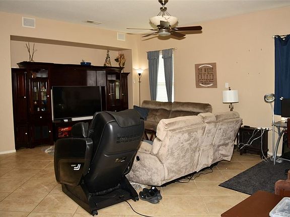Beautiful and expansive Seneca Springs single story home. This home features: 4bd 3ba, large den/office, living room, dining room, family room, a loft room upstairs with full bathroom. The exterior features 3 car garage, EX large RV parking with lots of cement, large cement patio area and a shed. If you need large spaces, this home has it. Everything is on the first level, with only a bedroom and full bath upstairs. There is a TV entertainment cabinet, made to fit into the space. The home is located very close to shopping, restaurants, medical and 10 frwy for commuting. The RV parking can hold about any 5th wheel, trailer or RV. The storage shed stays in the backyard.