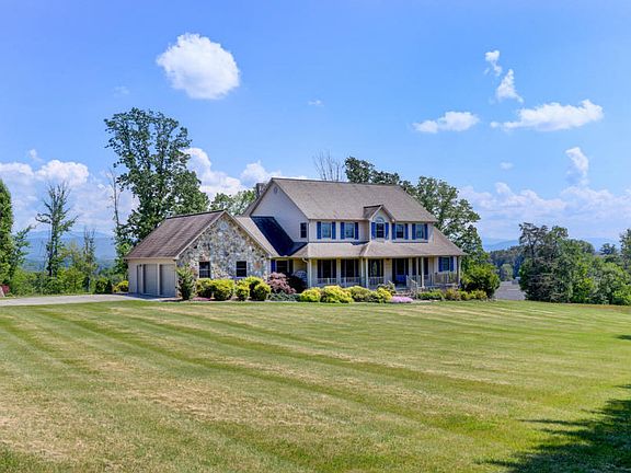 Exquisite estate with breathtaking year-round mountain views! Enjoy the privacy of 11.96 acres just minutes from town! This home features high ceilings and beautiful hardwood floors through out the home. You can enjoy the spacious great room with stone fireplace and floor to ceiling windows to enjoy the views. The house has an eat-in kitchen and formal dining area. The main level master suite has an extra large bathroom and relaxing sunroom! The walk-in closet across the hall could be used as a 5th bedroom. There is a finished basement that offers plenty of space toentertain and has 2 extra rooms for storage. The house also has quality built peachtree windows, Wildwood cabinets & steel support beams. -48x50 pole barn and workshop.Possible Farm opportunity with level acreage!