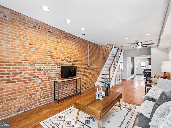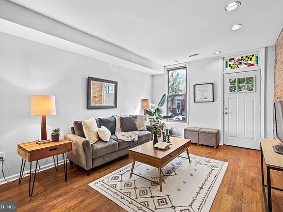 Welcome to 1418 Hull Street, a stunning 2-bedroom, 2.5-bathroom residence nestled in the heart of Locust Point. This thoughtfully designed home offers a harmonious blend of modern comfort and classic Baltimore charm. As you step inside, the first floor welcomes you with an abundance of natural light, accentuated by the character-rich exposed brick walls and gleaming hardwood floors. The spacious living room transitions into a gourmet eat-in kitchen. The kitchen boasts custom cabinets, sleek stainless steel appliances, and an inviting breakfast bar, making it an entertainer’s dream. On the second floor, you'll discover a generously sized front bedroom featuring a spacious closet, a recently renovated bathroom with a luxurious custom shower. The level is completed with a rear bedroom suite with an attached bathroom. The finished basement is an inviting additional living space. Here, you'll find a built-in electric fireplace that adds warmth and ambiance, along with a well-appointed bar for entertaining. The basement is completed by a storage/workshop area. Outside, a spacious rear patio awaits, providing the perfect setting for outdoor gatherings, and barbecues. Located just blocks away from Latrobe Park and Fort McHenry. You’ll also find yourself within walking distance of an array of neighborhood restaurants and bars, adding to the vibrant atmosphere of Locust Point. With its impeccable blend of style, comfort, and location, 1418 Hull Street is ready for it’s next owners this fall season!