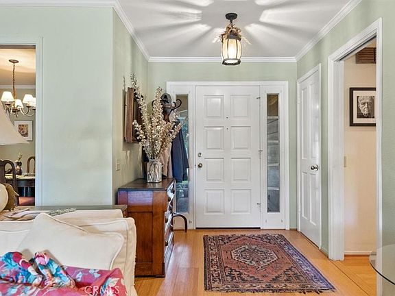 Nestled in a peaceful corner lot in Big Chico Creek Estates, this custom 3-bedroom, 2-bathroom homes offers the perfect blend of comfort, style and convenience. With its thoughtful design and abundant light, this home is ideal for those seeking both functionality and tranquility. As you enter, you'll be welcomed by a spacious gracious sitting room overlooking the garden like backyard. The formal dining room, perfect for family meals and entertaining guests is conveniently nestled between the sitting room and living room. The cozy living room features a stunning wood-beamed ceiling that creates a warm inviting atmosphere. The open and airy kitchen features an eat-up bar, solid surface counters and open seamlessly to the living area, creating a perfect flow for everyday living and gatherings. A light filled office space overlooks the backyard, offering a peaceful setting for work or creative projects. The informal dining area looks out over a lovely side garden. For added convenience, the separate laundry room is located just off the kitchen and includes its own sink. A half-bath (with floor to ceiling cabinets) is strategically positioned near the garage , offering easy access when you come home. The home has a spacious 2-car garage plus large RV storage, perfect for toys and extra storage.
