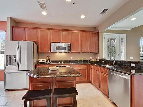 Feel like you are on vacation every day in this park-like setting at the end of a quiet cul-de-sac. This home is like new, very lightly lived in and well maintained, feels more like a single family home, private, sunny and light filled. This airy unit has a sizable loft that serves well as a family retreat or a media space in addition to a well-proportioned office nook. Shiny granite counter tops, stainless appliances and splashes of warm modern colors make you feel at home instantly. Bring the outdoors in with full sliding glass doors that allow you to expand your entertainment space and relax in your private screened lanai overlooking a picturesque pond and fountain. Bella Trae is a stable, active community for all ages and is located within Champions Gate's master planned community with a newly added downtown with shops and restaurants within minutes from home. You are minutes from all that Disney has to offer and two Greg Norman-designed championship golf courses. Your Residents' Clubhouse is a 12,500-square-foot private state-of-the-art gathering place, offering a large fitness center, billiard's room, resort style pool and spa, bocce ball courts, and putting green. See this property today, you won't want to miss it.