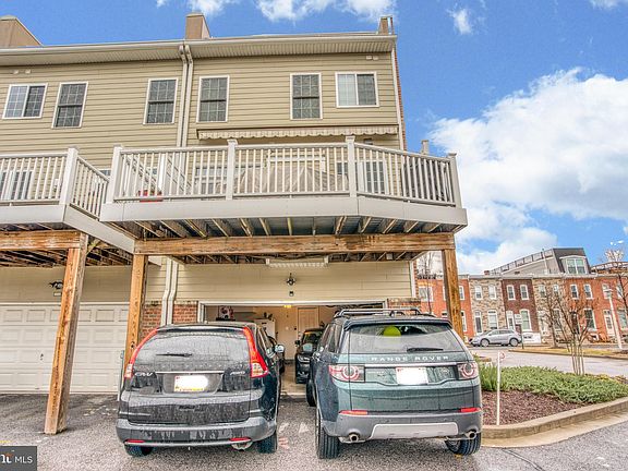 Gorgeous end of group Townhome with 6 Car Parking!! Beautiful 3 Bedrooms, 3 Full bathrooms, Multiple decks with a 2 Car Garage and 4 additional deeded spots! Last row of homes built in the Locust Point community of the Townes of Locust Point. Features include, gorgeous center kitchen with 42 inch cabinets, granite, Stainless steel and large breakfast bar. Kitchen also has a built in wine cabinet hanging from the ceiling. Separate dining area with TWO large pantries! Enjoy the family room with a gas fireplace, family room opens to large over-sized deck, don't worry about the sun and gorgeous sunset over the Inner Harbor, deck has an electric built in awning! Find your way to two master suites with walk-in closets, washer dryer on main bedroom level, Up to the 4th level and out to a roof deck with the DIRECT Water views and the entire City skyline. Based on recent activity this will not last long! call us today!