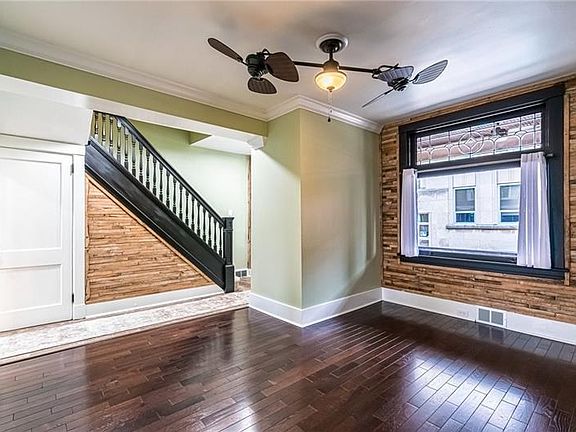 Let the charm & character of this amazing brick home envelope you in warmth! Meticulously remodeled. Awesome location, convenient to downtown! The foyer welcomes you with rustic ceramic tile flooring and unique wood-wall accents. Neutral décor, along with a decorative fireplace, 8" baseboards, crown molding, cool ceiling fan & solid hardwood flooring create a cozy gathering space in the living room. You'll LOVE the bright kitchen with granite counters, peninsula breakfast bar with exposed brick and wine bar. Upstairs are two bedrooms and a gorgeous full bath. The master bedroom features a huge walk-in closet with laundry. Finished flex space on the third level could be used as another bedroom or a family room. The relaxing covered front porch, rear deck and maintenance-free yard are perfect for entertaining. Exterior basement access to utilize the ½ bath in the basement (interior access as well, second laundry on lower level.) Quality renovation PLUS off street parking in the city!