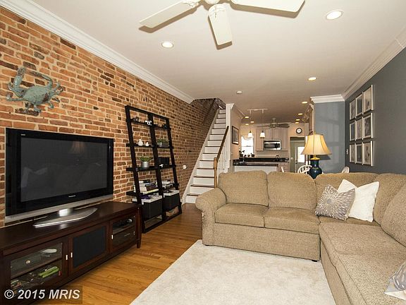 Renovated Federal Hill 2 bedroom,2.5 bath features an open floor plan,wood floors & exposed brick. Bright white kitchen w/stainless appliances &granite countertops. Bonus room on first floor perfect as a private office space. Rooftop deck accessible from hallway w/city views. Walking distance from downtown, shopping and nightlife. Green space across the street adds privacy. 1 year home warranty.