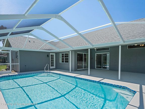 Welcome to your dream home! Situated on an oversized .40-acre lot with NO HOA Inside, enjoy over 2,200 sq. ft. of open living space with soaring vaulted ceilings and abundant natural light that fills every room. The brand-new gourmet kitchen showcases wood cabinetry, granite countertops, a closet pantry, and modern finishes. It flows seamlessly into the family room with a convenient kitchenette area, while the formal dining room off the living room makes entertaining effortless. The primary suite is a true retreat with dual oversized closets (his & hers) and a spa-like bath featuring dual sinks, a large jetted soaking tub, and a separate shower. Secondary bedrooms are unusually large with rare oversized closets, and the second bath offers direct pool access. Step outside to a huge screened lanai overlooking the newly refinished gunite pool and tile, with updated pool equipment. The setting is breathtaking, with water views of a peaceful waterway connecting two lakes—home to a variety of birds and wildlife. Major updates include: new roof (2022), new 2025 A/C, newer water heater (2021), freshly painted exterior, and modern flooring with luxury vinyl plank and tile throughout. This beautifully remodeled waterfront oversized pool home provides plenty of space for boats, campers, and all your toys—all while being conveniently close to schools. This rare opportunity combines the best of Florida living: a bright open floor plan, soaring ceilings, oversized lot, waterfront views, pool oasis, and freedom with no HOA. Agent owned.