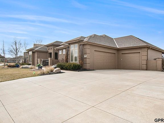 Contract Pending Exceptional single-story ranch in Elkhorn’s sought-after Silverleaf Estates! This 6-bed, 5-bath gem offers 4,833 sq ft of luxury living. Revel in the open floor plan with abundant natural light, courtesy of floor-to-ceiling windows framing the tree-lined backyard. The chef’s kitchen boasts top-tier appliances, a walk-in pantry & an 8-seat island. French doors from the dining room lead to a front patio for tranquil moments. The basement, an entertainer’s dream, features a sunken bar & TV room with theatre seating, hello #MarchMadness. The split 3-car garage has epoxy floors, heated side with hot/cold plumbing & a Level 2 electric car charger. Outdoors, the .41 acre lot hosts a covered deck, leading to a patio, in ground saltwater pool, gas fire pit, playset & greenspace. The pool has a new heater, pump & automatic cover. Retreat to the spacious primary suite with whirlpool soaking tub, walk-in shower, closet & laundry room. Roof & A/C replaced in 2019. Prime location!