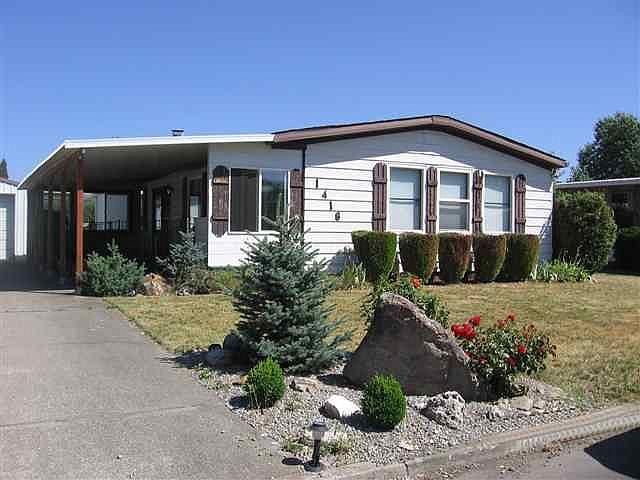 2-car garage/shop.. Shower in master bath (garden tub was removed), vinyl windows, awnings, handicap access, built-in microwave and built-in hutch in the dining area.