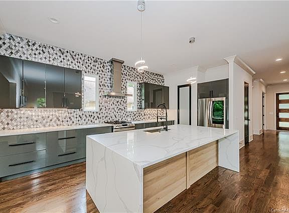 Custom Modern masterpiece with high end finishes in sought after Optimist Park. Open concept, designer lighting, wide plank wood floors throughout, linear gas fireplace, office/bedroom/quarantine-quarters. The designer chefs kitchen features European style cabinets, large Carrera Classico quartz waterfall edge island, gas range, refrigerator, pandemic pantry and designer backsplash. The master suite is pure luxury, Large master bedroom with walk in closet, relax and have coffee or cocktails on your private terrace with seasonal views of the city skyline and sunsets. The spa like master bath with dual showers and free standing soaker tub is divine. Rear covered screened porch and fenced sodded yard. 2 car attached garage. A truly special home by Charlotte Home Builders a leading custom builder in the Charlotte area. Top of the line in every way and move in ready. Walk 2 blocks to have drinks or dinner at the new optimist hall development and light rail station. Location, location!