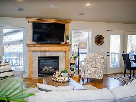 Price Improved! Welcome Home to everything you have been dreaming of...open concept, wide plank hardwood floors, vaulted ceilings, fireplace, oversized 3 car garage, ranch with finished lower level, stunning views of the golf course, large kitchen island perfect for entertaining and a deck to enjoy the sunset. The main level has a beautiful primary suite with walk-in shower and walk-in closet. The second bedroom & bath is also part of the main level living.