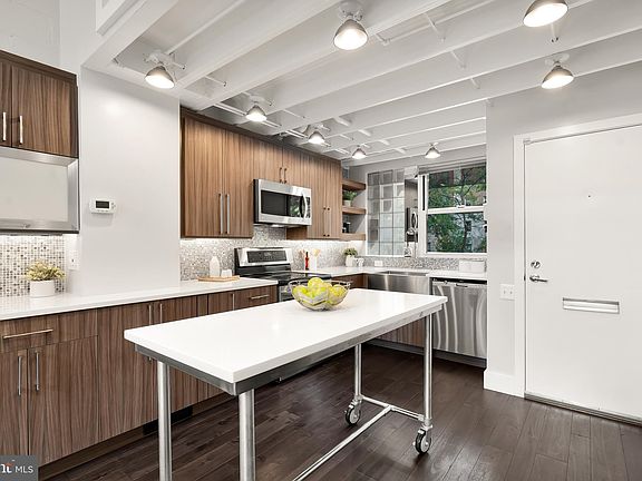 Welcome to 1418 Rhode Island Avenue - a sleek, contemporary four-level row home, including a separate legal studio apartment in the heart of Logan Circle. As you enter, you're greeted with an open floor plan boasting a two-story living room with soaring windows and an industrial style fireplace. The main level features a spacious living area leading to the private outdoor patio, as well as a dedicated dining area, a half bath, and a gourmet kitchen with custom cabinetry, granite countertops, and modern tile backsplash. Heading upstairs, you'll find the lofted den or office overlooking the main level. The top floor includes a skylit hallway, a bedroom with two full closets and a Murphy bed, an updated hall bathroom, and the bright, spacious primary bedroom with abundant closet space and an ensuite bathroom. This impeccably maintained property has an attached private garage and an income generating studio apartment with a C of O. The lower level (fully separate from the main living space) features an in-law suite and/or a rental opportunity with a kitchenette, walk-in closet, and private entrance. With a Walk Score of 91, you are mere moments away from a fantastic variety of retail and dining options, and just a stone's throw from Whole Foods and Trader Joe's. You won’t want to miss this one!