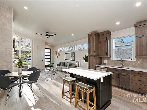 This beautiful modern home is perfectly situated just blocks away from the Boise River, greenbelt, Boise State University, the Extra Mile Arena for concerts, and all the wonderful restaurants and fun downtown Boise has to offer. This new home is just over 2 years old, and features a beautiful open floor plan, vaulted ceilings, Floor to ceiling fireplace, quartz countertops, newer appliances- Washer, dryer and fridge as well as custom blinds. The lot features a low maintenance fully fenced back patio and 2 car garage. The home is currently being leased through June of 2025. No HOA! It would make a great permanent residence or short term/long term rental.