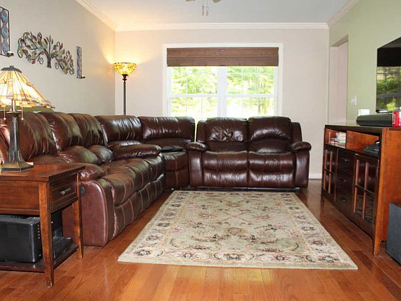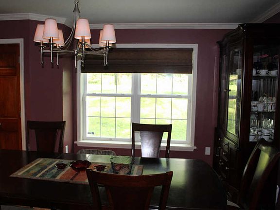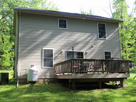 Beautiful colonial style home on a wooded lot with upgrades including 2.5 bathrooms, real wood kitchen cabinets, real hardwood floors downstairs, Spectrus granite countertops, Hunter Douglas Custom blinds for every window, propane range and fireplace. 3 Large bedrooms, laundry on the second floor. Master bedroom suite. Propane fireplace will keep home warm and is thermostatically controlled. Foam insulation to keep the house cool in summer and warm in winter. Both attic space and crawl space are insulated and temperature controlled and can be used for storage. Large deck off kitchen for entertaining, front porch for sitting and relaxing. Come see this well appointed home which is move in ready!